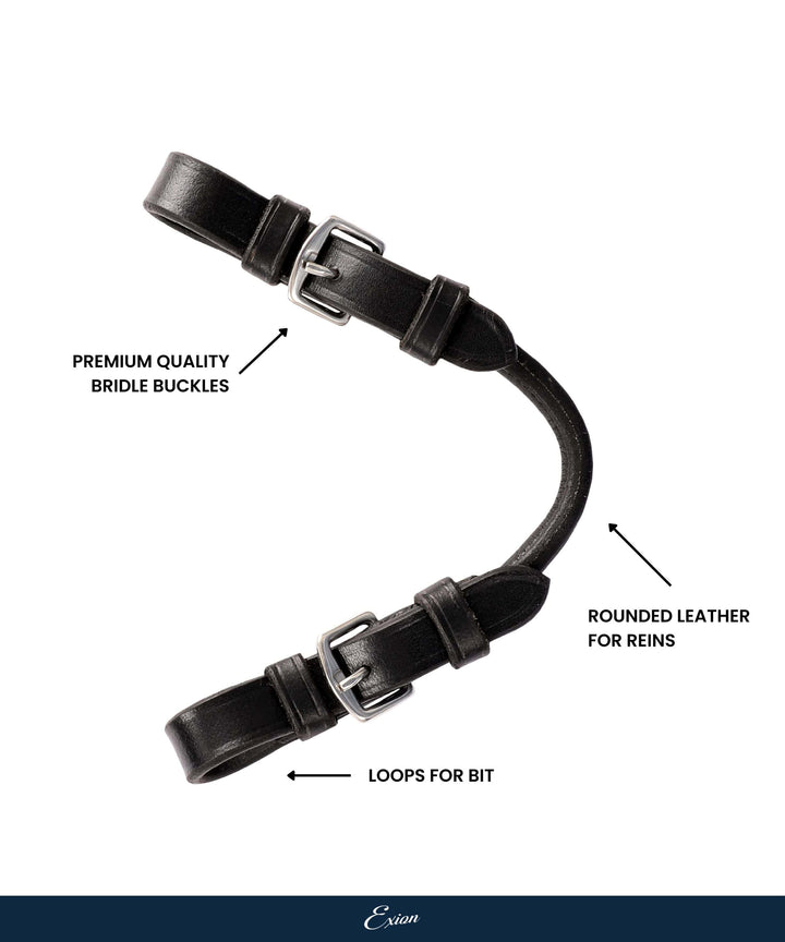 ExionPro Pelham Roundings serves the purpose of transforming pelham bits from two-rein to one-rein configuration. This leather strap connects the snaffle ring to the curb ring, creating a loop where the rein is subsequently attached.